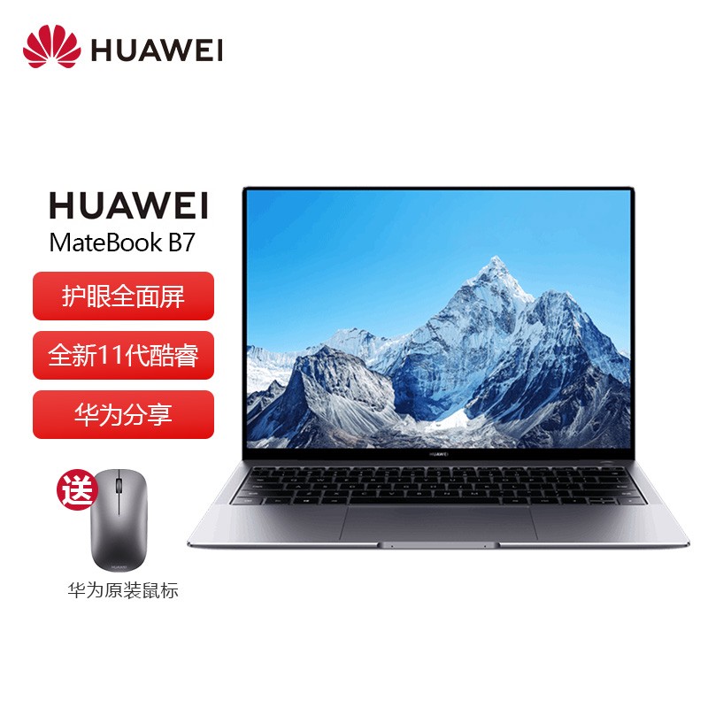 华为笔记本电脑 MateBook B7-410 商用办公轻薄本 i7-1165G7/16GB/512GB/集显/触屏/13.9英寸 深空灰