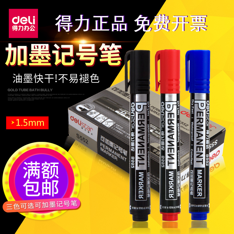 得力S552可加墨记号笔 1.5mm油性笔 大头笔 勾线笔 物流用记号笔